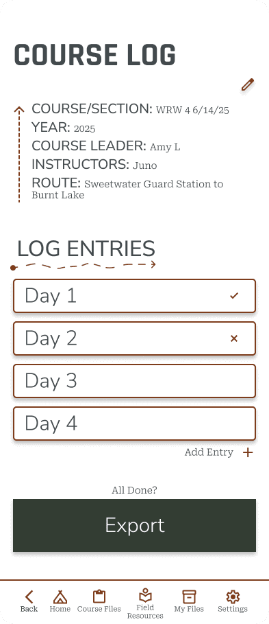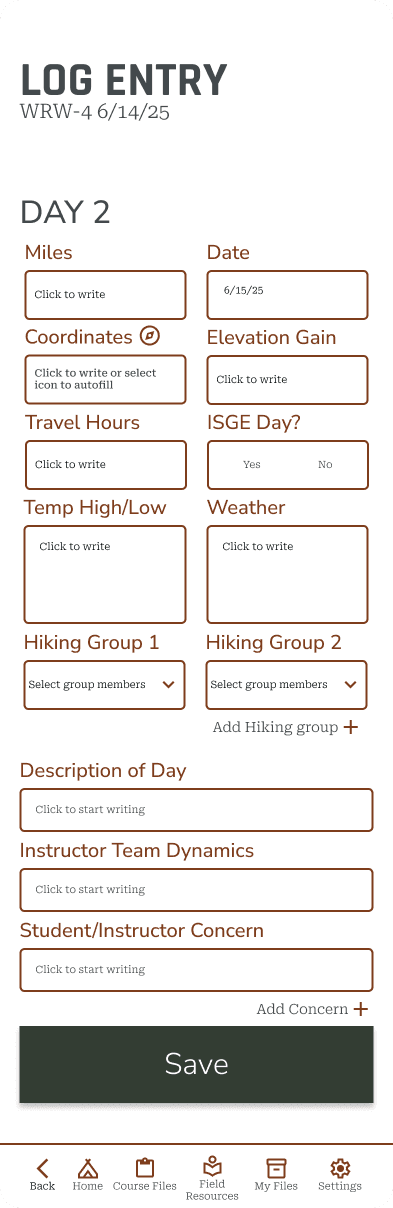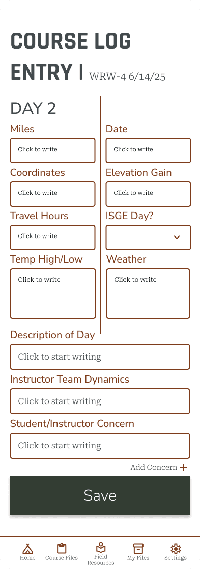 NOLS instructors currently lack a single field-ready digital documentation system that balances ease of use with organizational needs. Current digital approaches require multiple apps, lack standardization, and present editing challenges especially on mobile devices. This inconsistency creates barriers to data synthesis, delays feedback loops, and prevents NOLS from fully using documentation to improve programs systematically.
