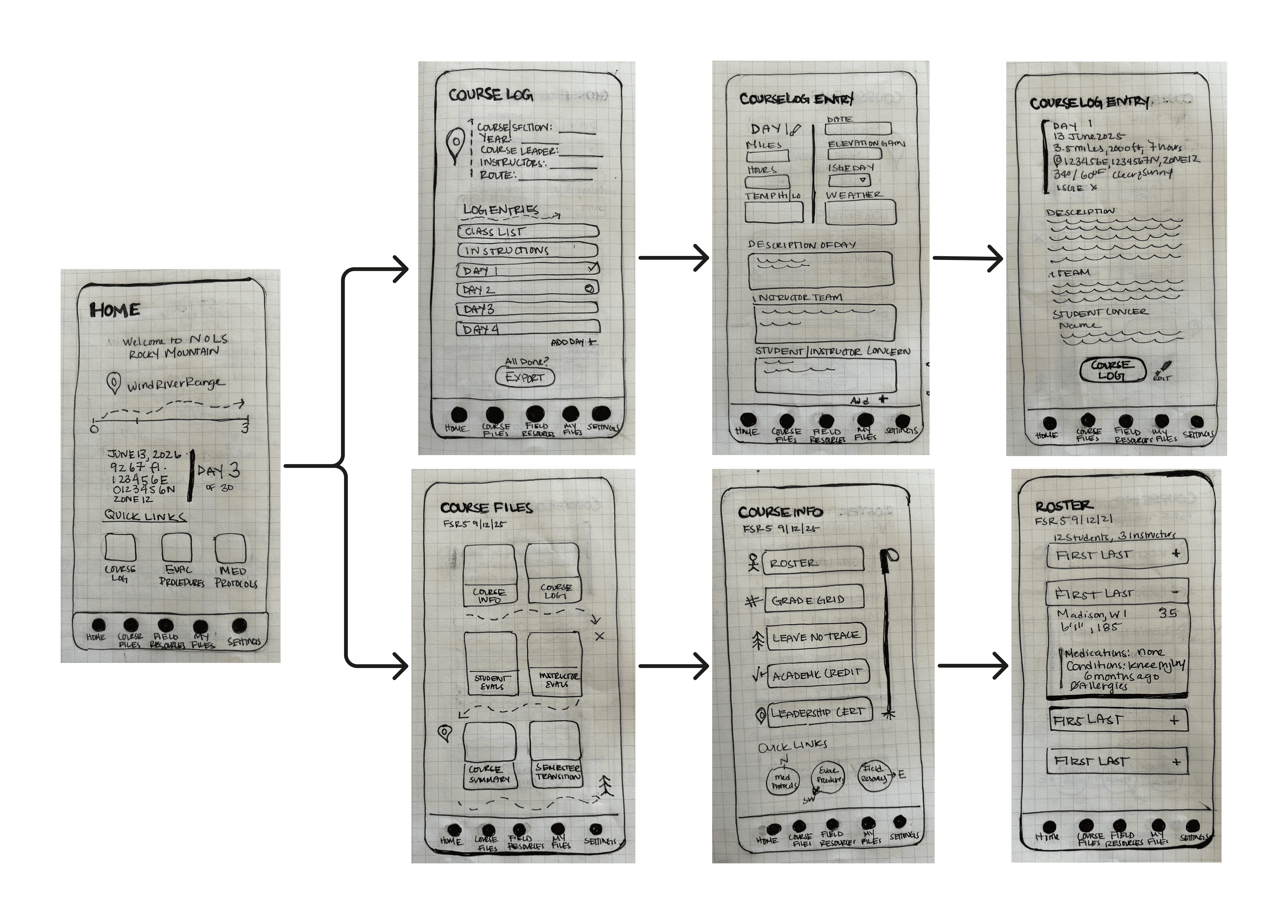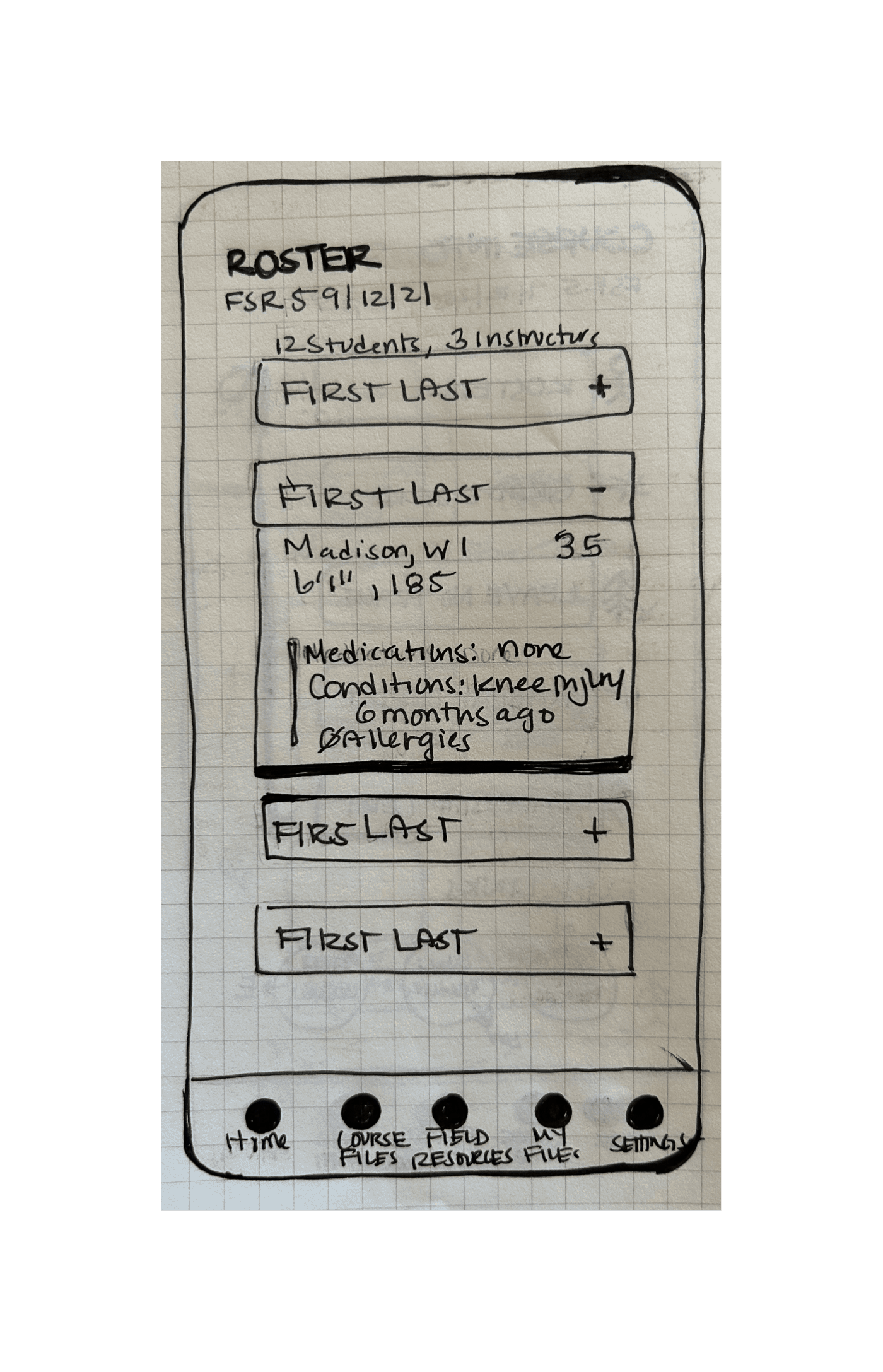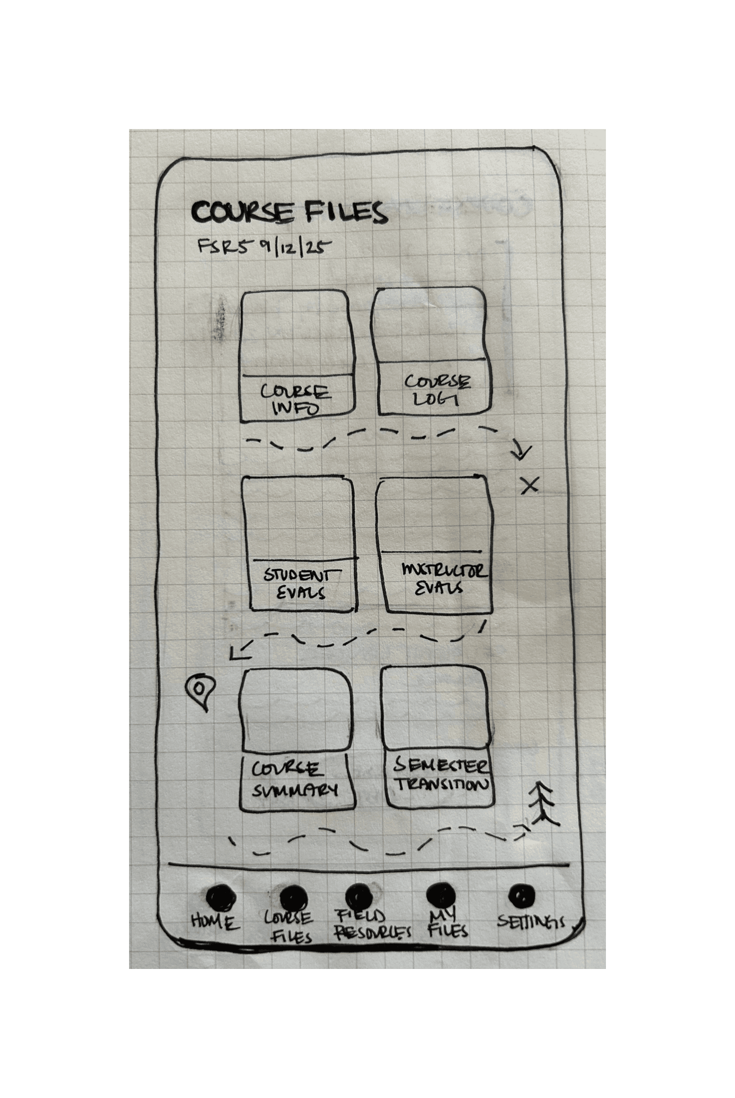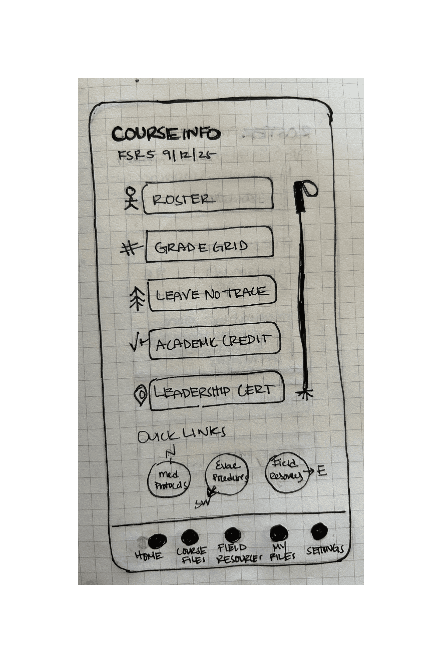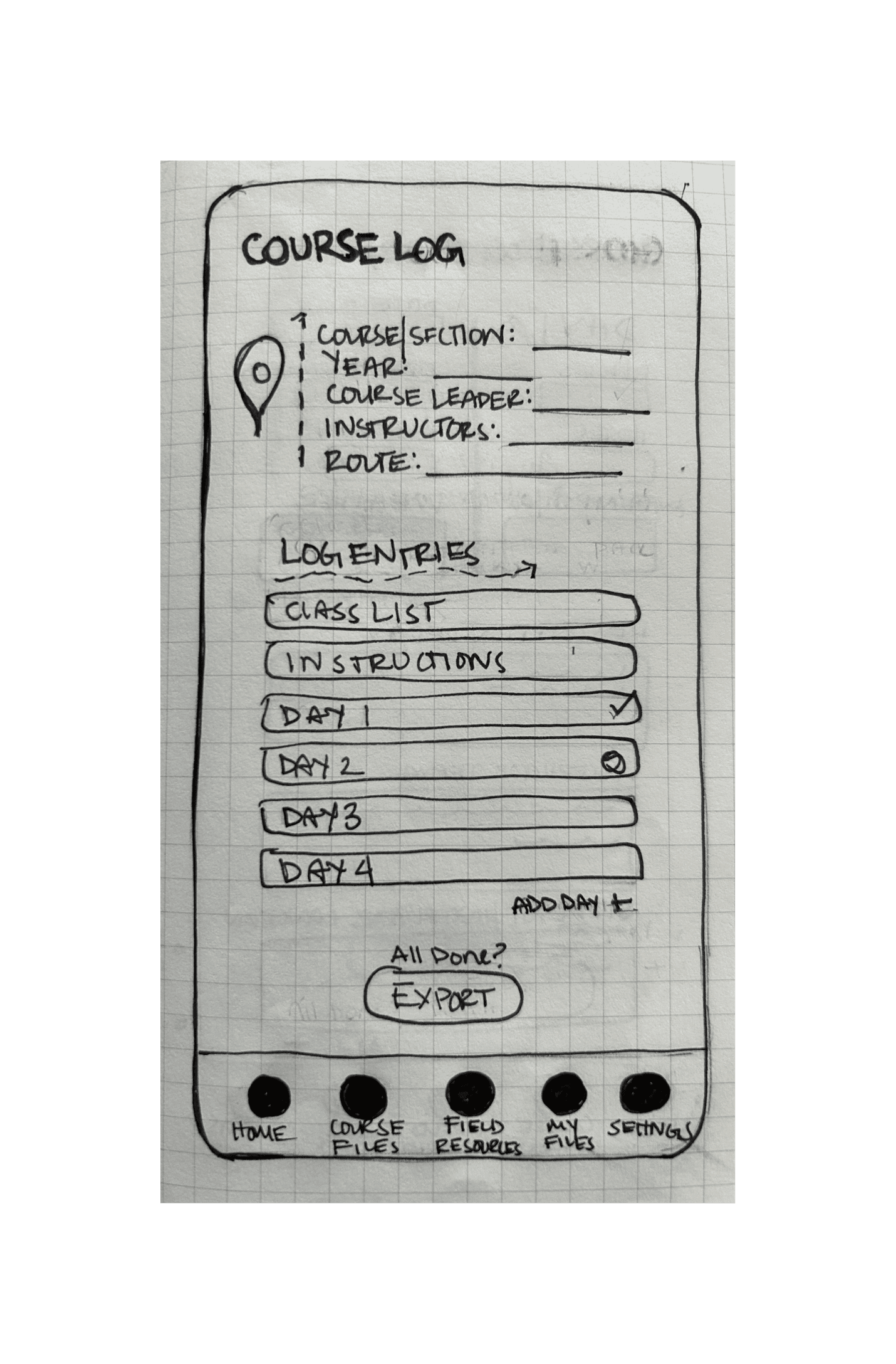 Based on information gathered in the research phase, I developed a list of features, prioritized features that instructors would use the most, (the course log and resources), as well as documentation that had the most manual input (camping data and student evaluations).