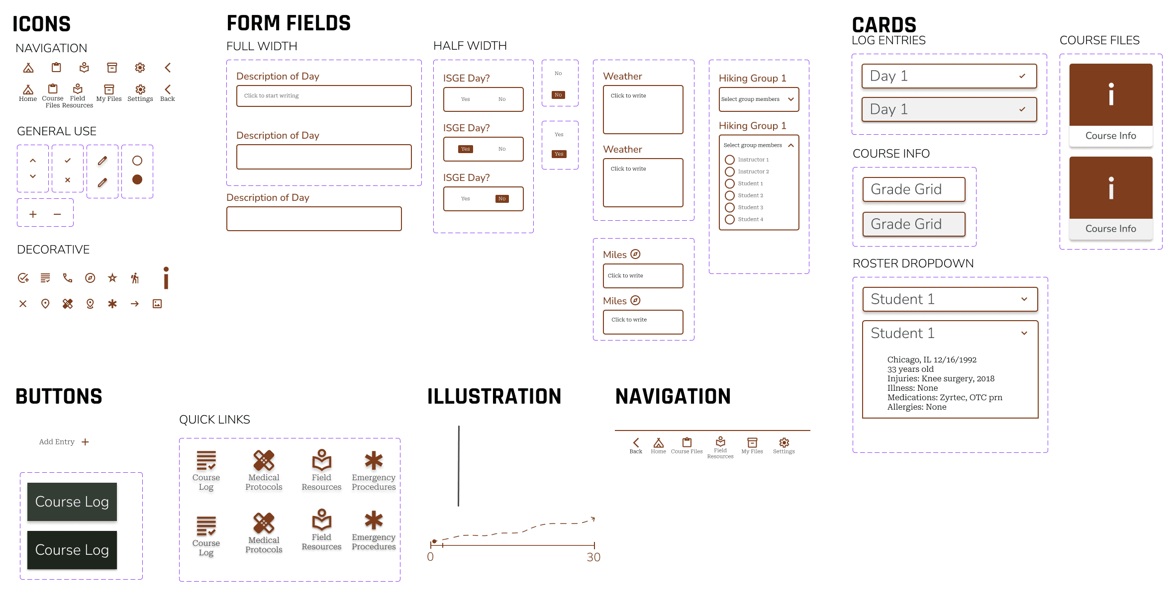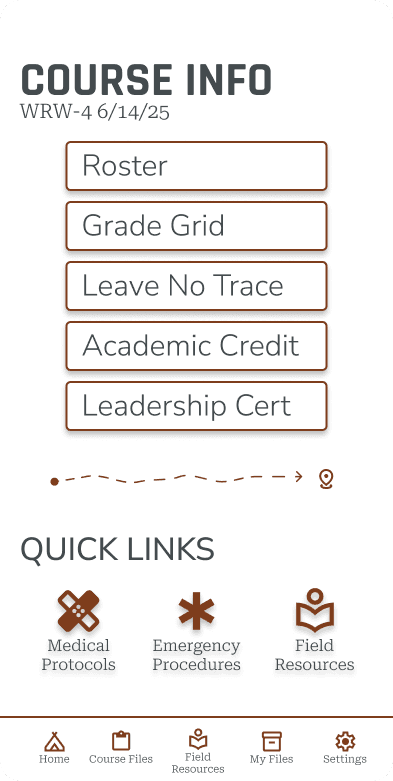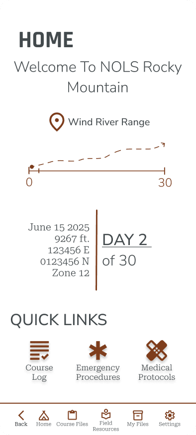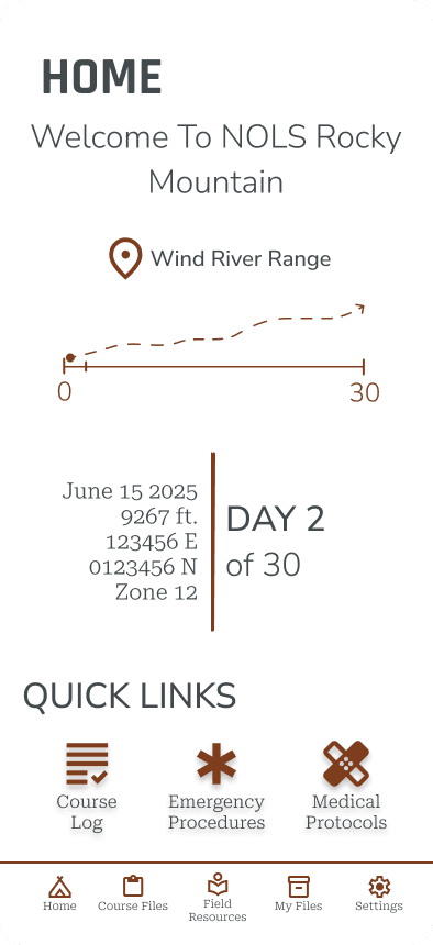 NOLS already has clear brand guidelines primarily developed for print publications. I reviewed color, typography and logo to evaluate what colors would transfer well into a digital space, with WCAG accessibility guidelines in mind., and how to distinguish the app as an internal tool through brand guidelines.