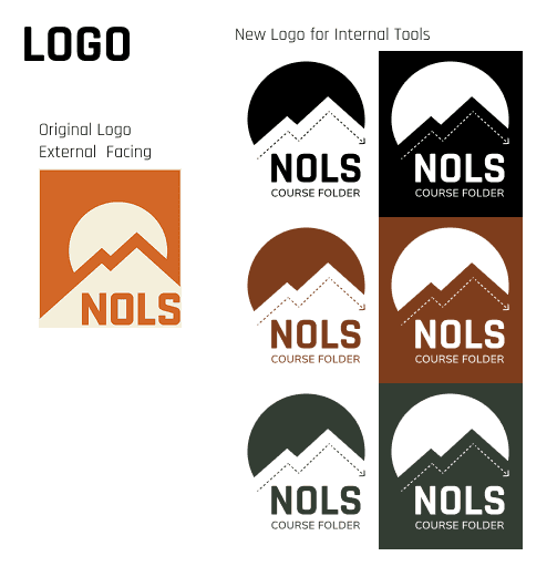 I adapted the NOLS logo to internal use and added a playful dashed line mimicking how trails are depicted on topographic maps. I made the sun a bit bigger so that it served as a container for the logo without the square border of the original logo. Adding “Course Folder” mimics location specific logos for NOLS. The specificity of adding “Course Folder” shows care and attention to instructor needs by designing a logo adaptation just for them.